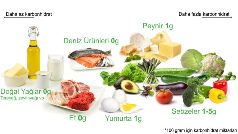 - Tüketilecek besinler: Et, balık, yumurta, yer üstünde yetişen sebzeler ve doğal yağlar (tereyağı gibi).