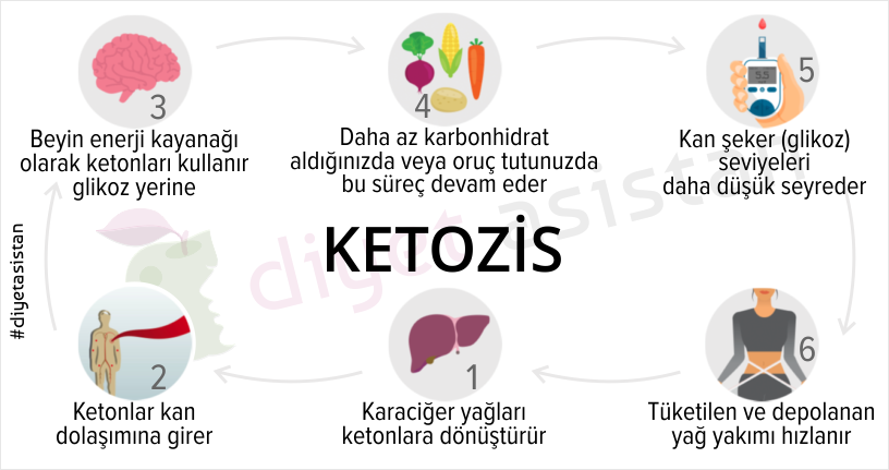 Çok az miktarda karbonhidrat tükettiğinizde vücudunuz enerji kaynağı olarak yağları kullanır ketonlar üretilir ve yalnızca çok az miktarda protein kan şekerine dönüştürülür.